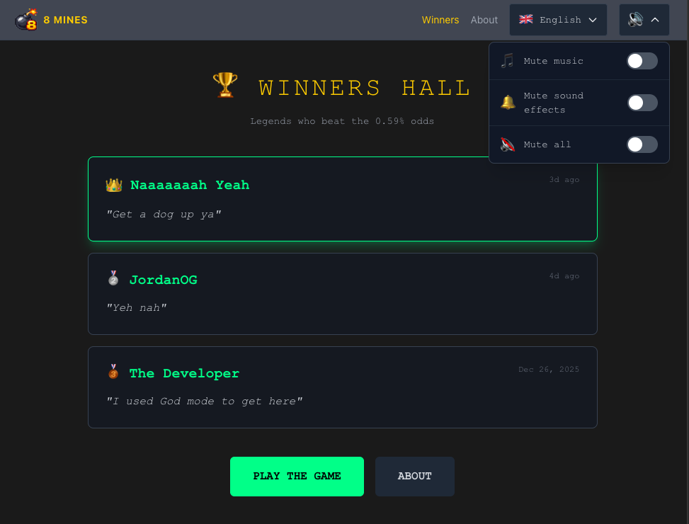 8 Mines teaches through experience rather than lecture. By making the game feel "almost winnable" while being mathematically stacked against the player, it demonstrates the core principle of all gambling: short-term wins may occur, but long-term losses are mathematically guaranteed. The transparent probability display reinforces this lesson without being preachy.
